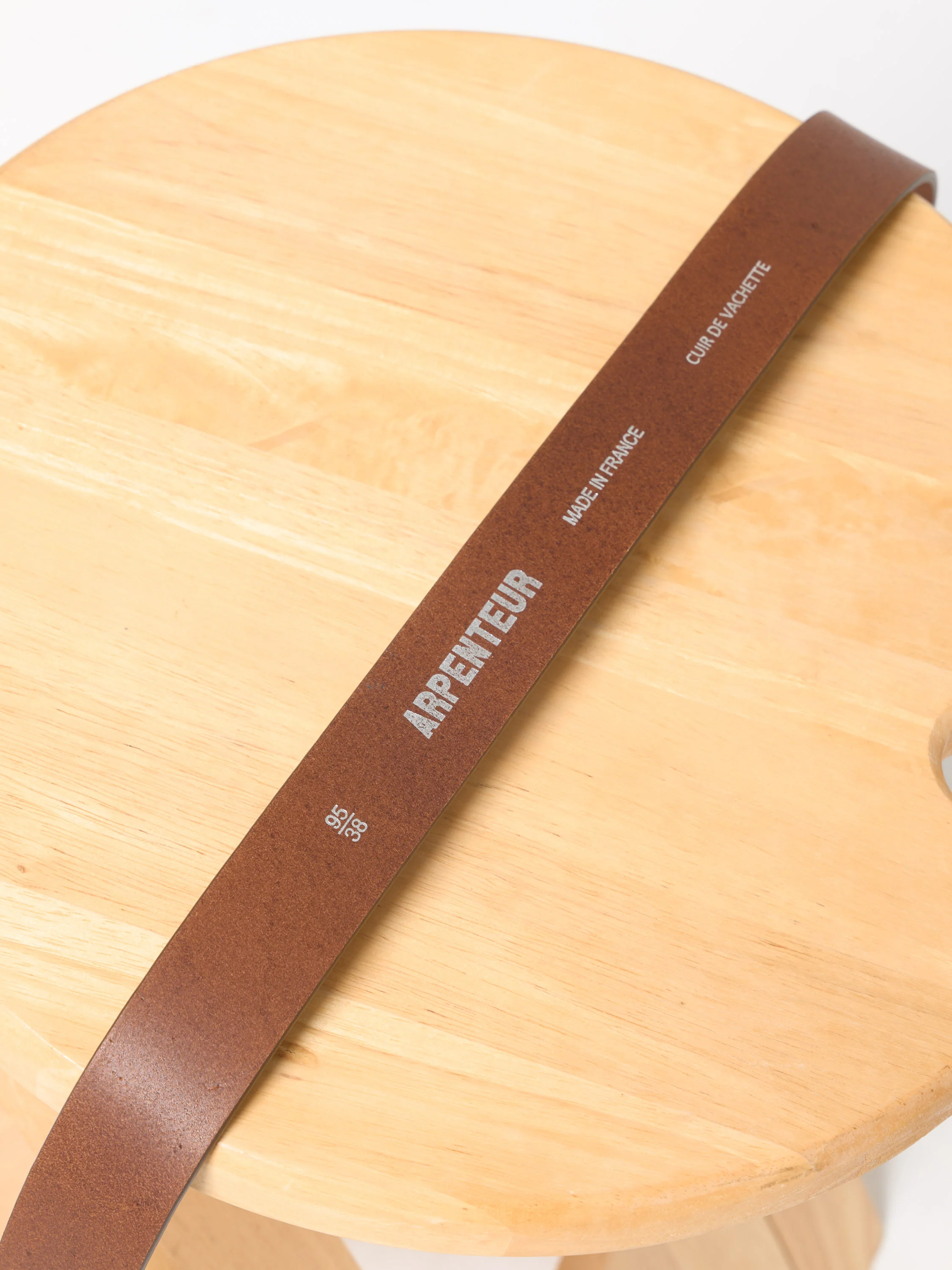 Ceinture souple et légère fabriquée dans un cuir de vachette pleine fleur et au tannage végétal. Design minimaliste, boucle en cuir, gravure argenté sur l’intérieur.