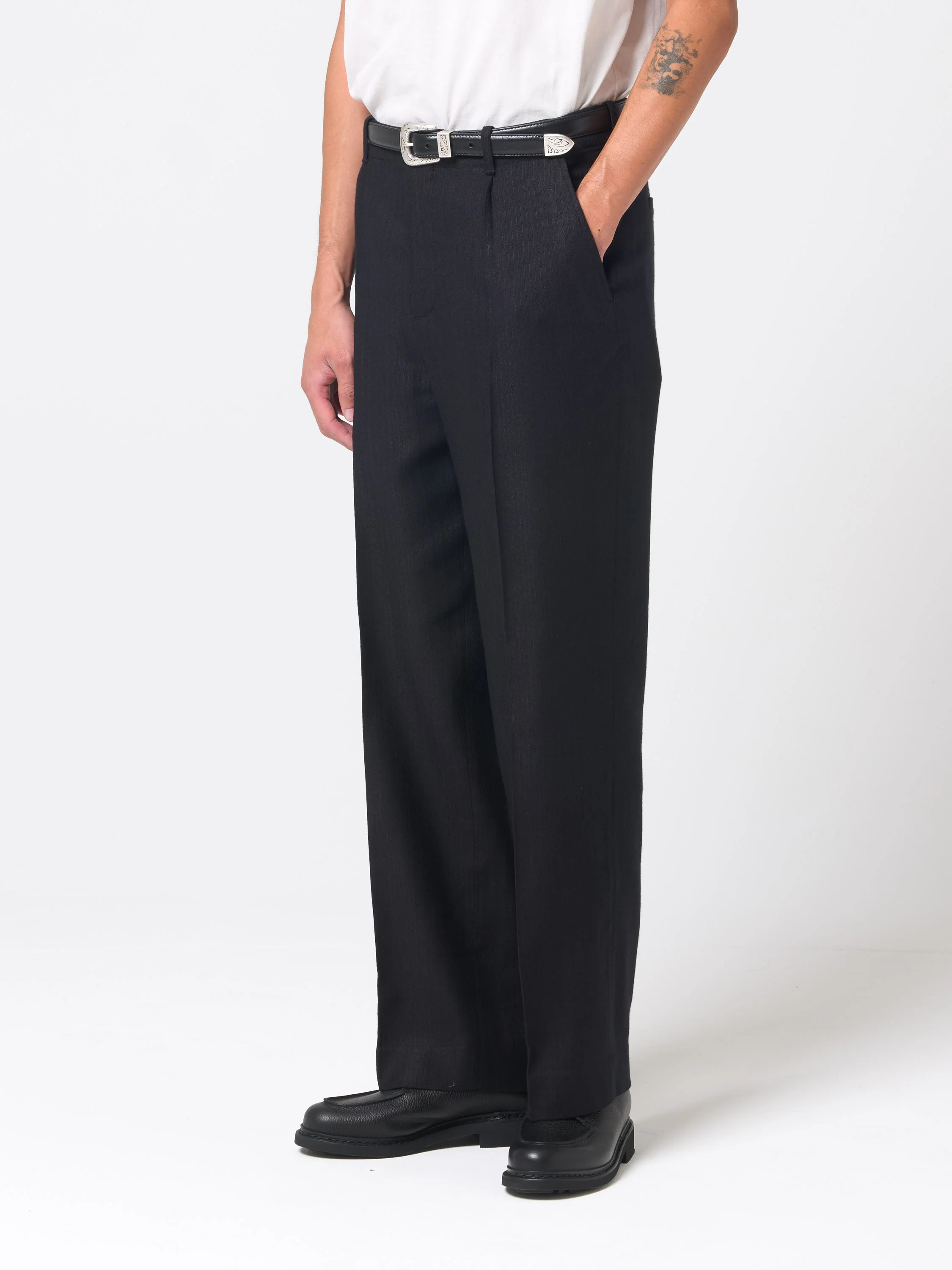 Fabriqué dans un tissu italien en mélange de viscose et de coton dense mais très confortable, le chino Borrowed présente une coupe large et décontractée. Devant plissé, deux poches latérales, deux poches arrière passepoilées, des boutons en corne, une braguette zippée YKK et une fermeture à crochets et œillets recouverte à la taille.