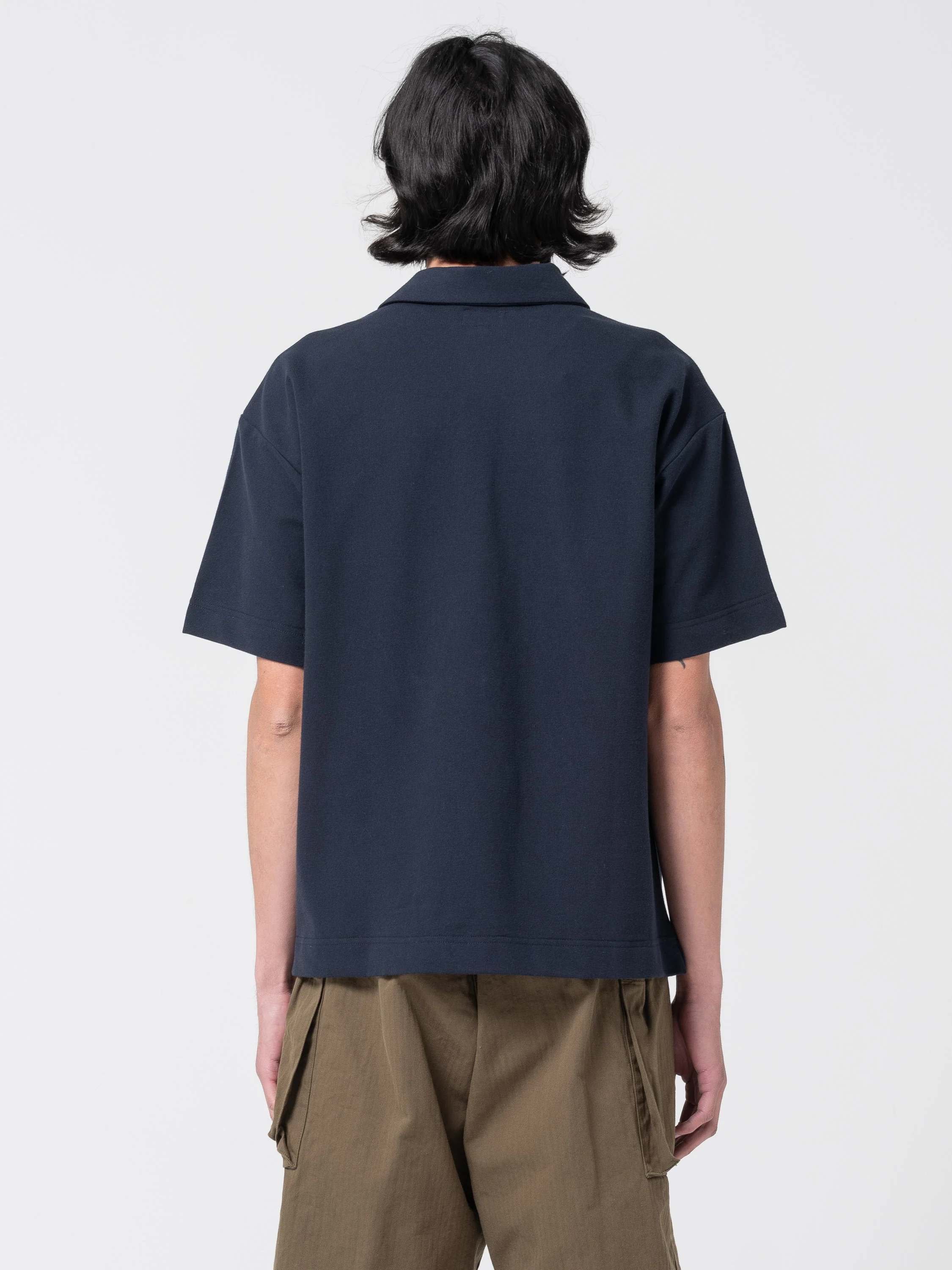 Le modèle POLO à manches courtes et au volume généreux est inspiré de l'univers marin. Son col à forme droite se ferme par deux boutons en nacre véritable.