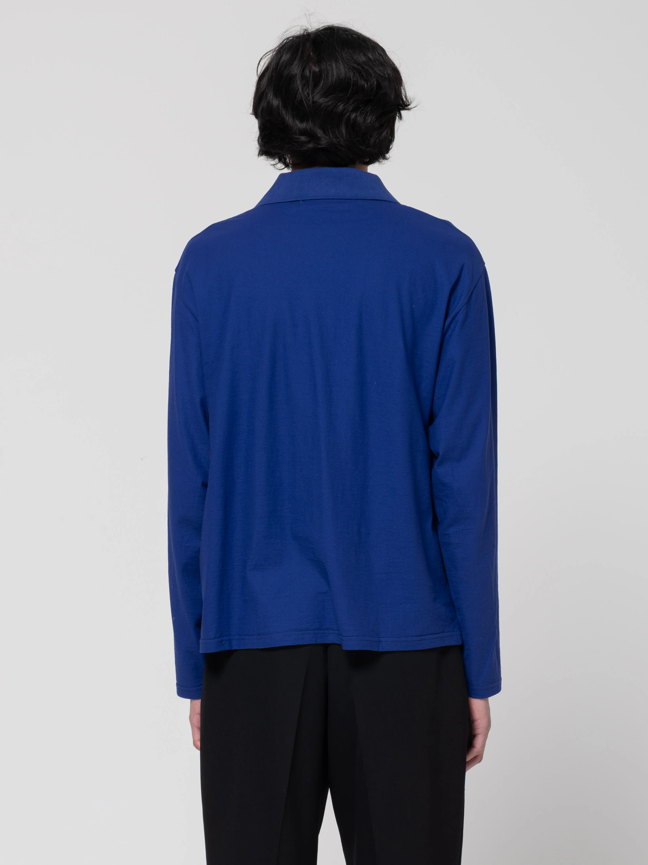 Confectionné en jersey de coton japonais à haute torsion, le t-shirt Rugby à manches longues présente une coupe carrée classique et une longueur légèrement raccourcie. Il est doté d'une patte de boutonnage en piqué à deux boutons, d'un col côtelé tricoté et de boutons en nacre. Le col, teint par pigmentation, est conçu pour se patiner au fil des lavages, créant ainsi un contraste avec le reste du tissu pour un effet vintage.
