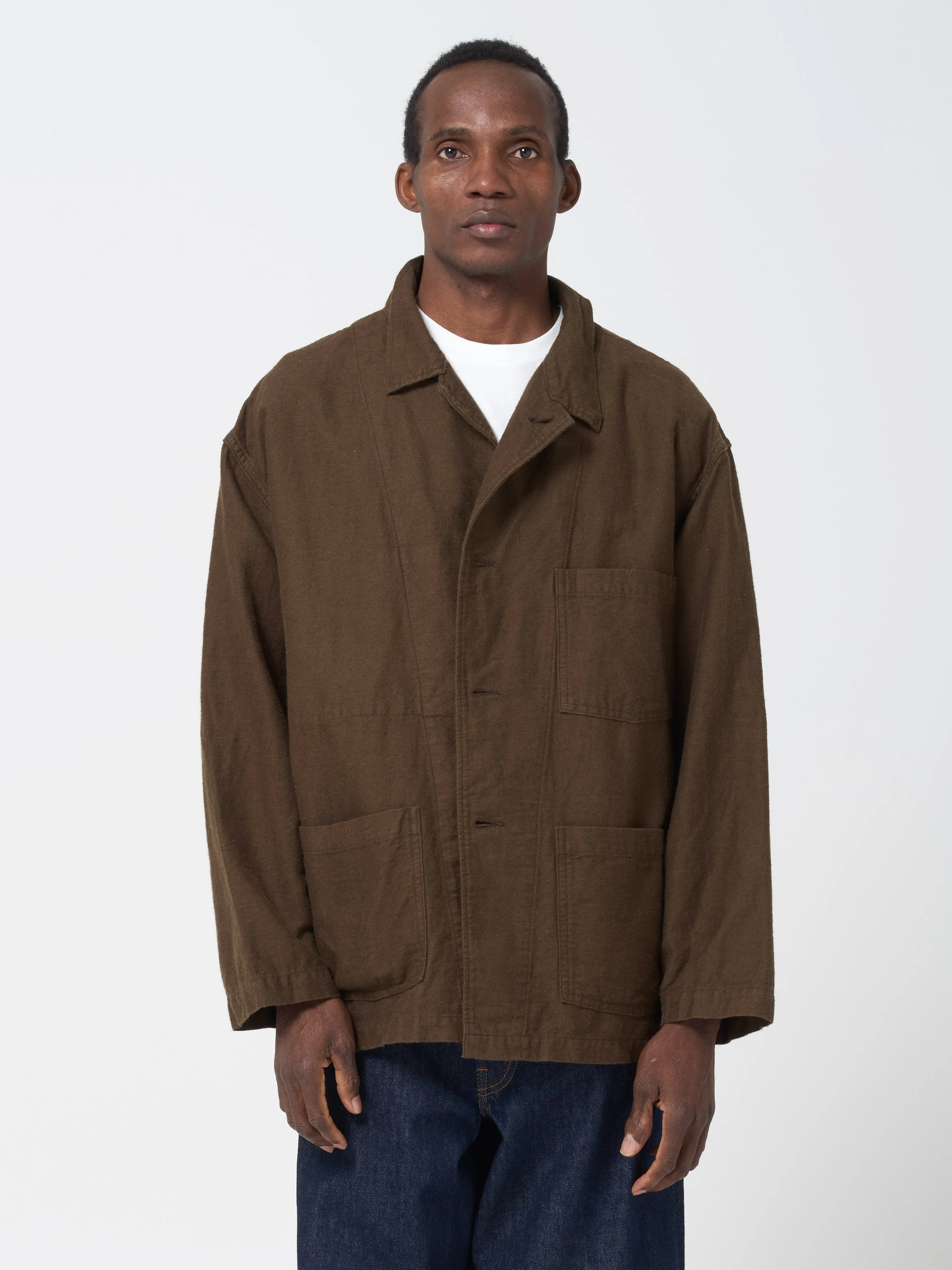Une veste à la coupe décontractée signé orSlow, confectionné au Japon dans un tissu moleskine résistant en coton et lin, légèrement brossé pour un aspect patiné. Un modèle à la fois pratique et intemporel, rehaussé de détails raffinés.