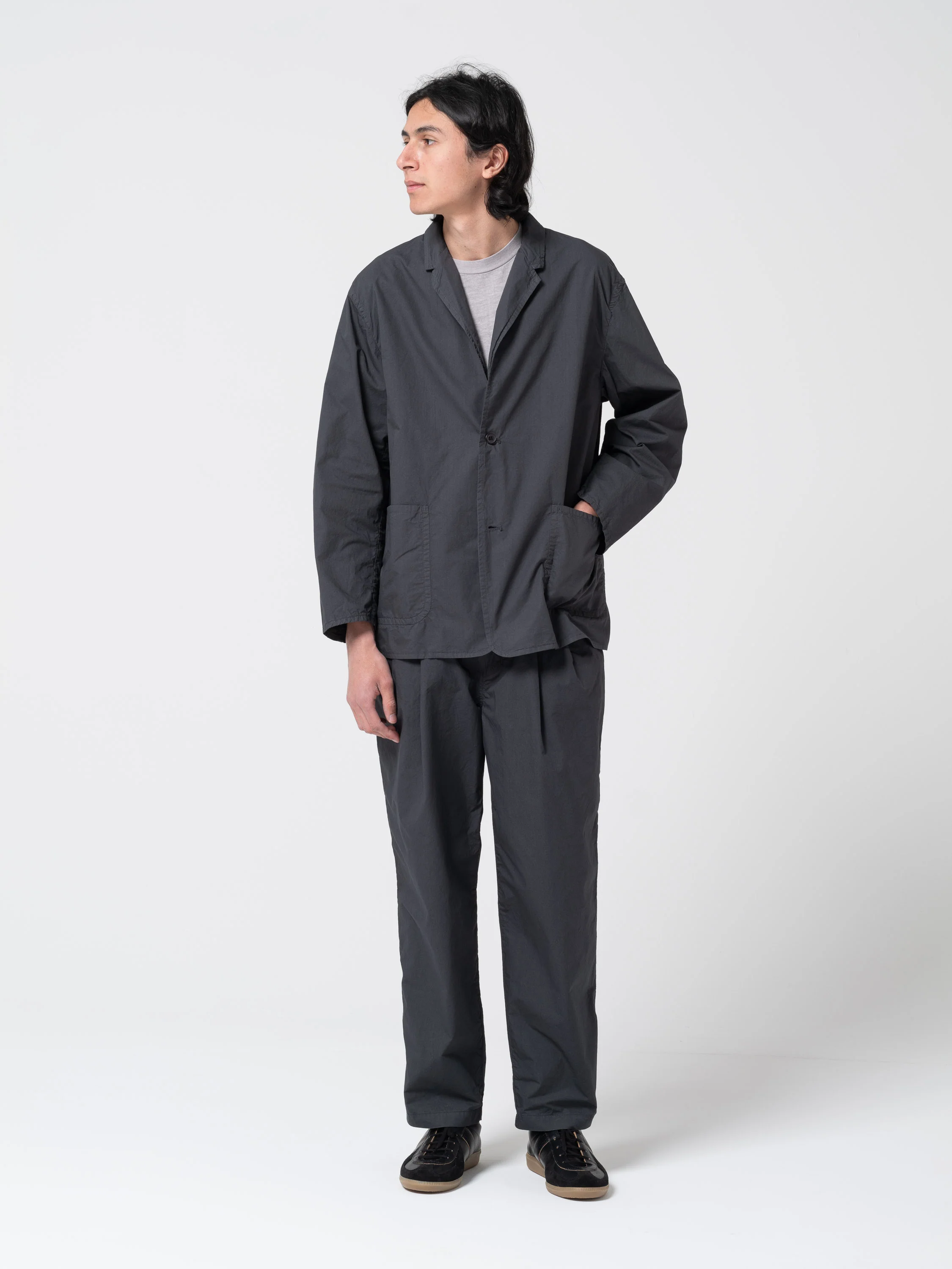 Veste 2 boutons. Tissu typewriter léger et teint en pièce . Coupe décontractée