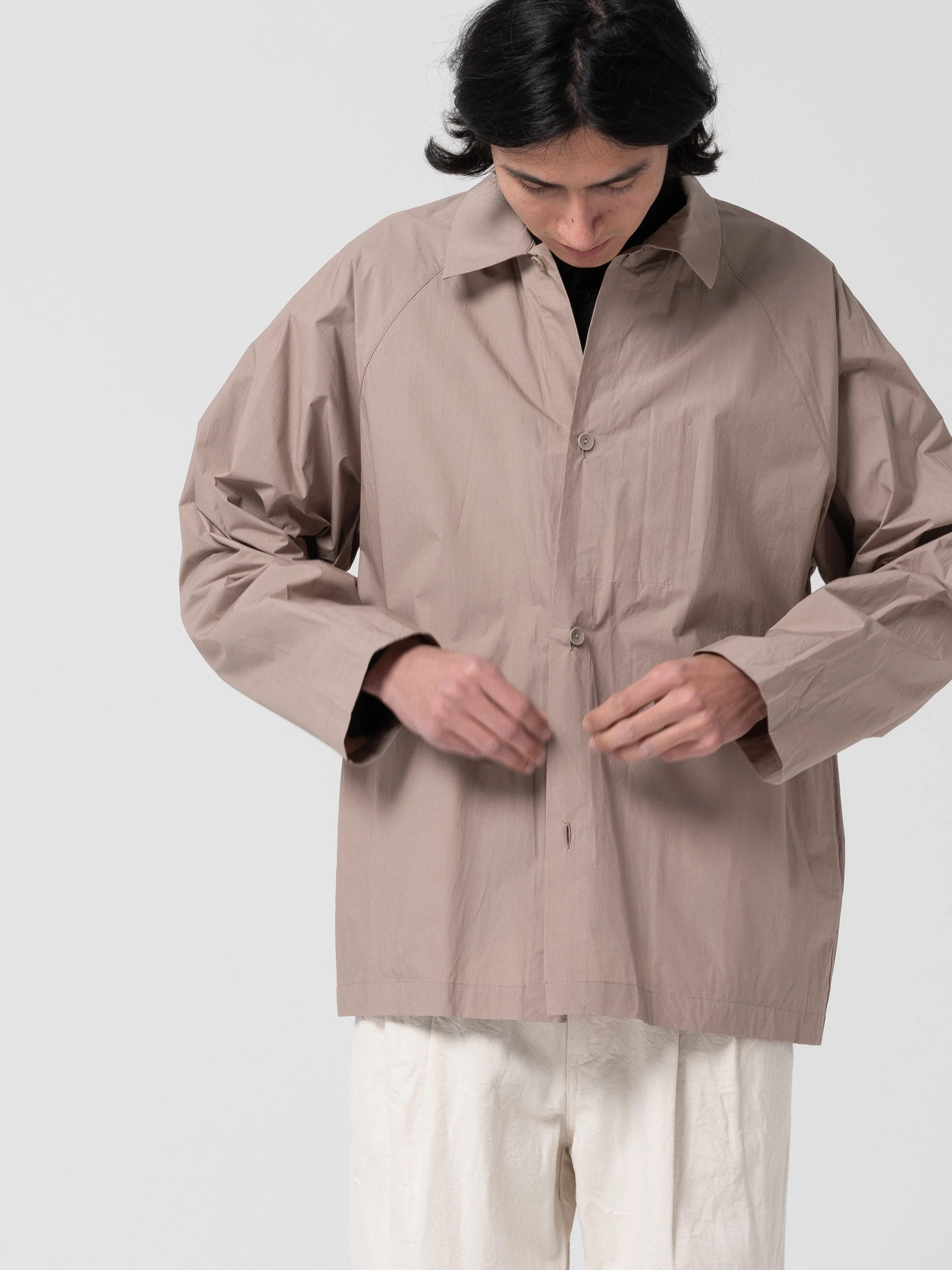 Veste très légère fabriqué dans un coton dense et craquant. Bonne protection contre le vent. 2 poches latérales. Coupe décontractée.
